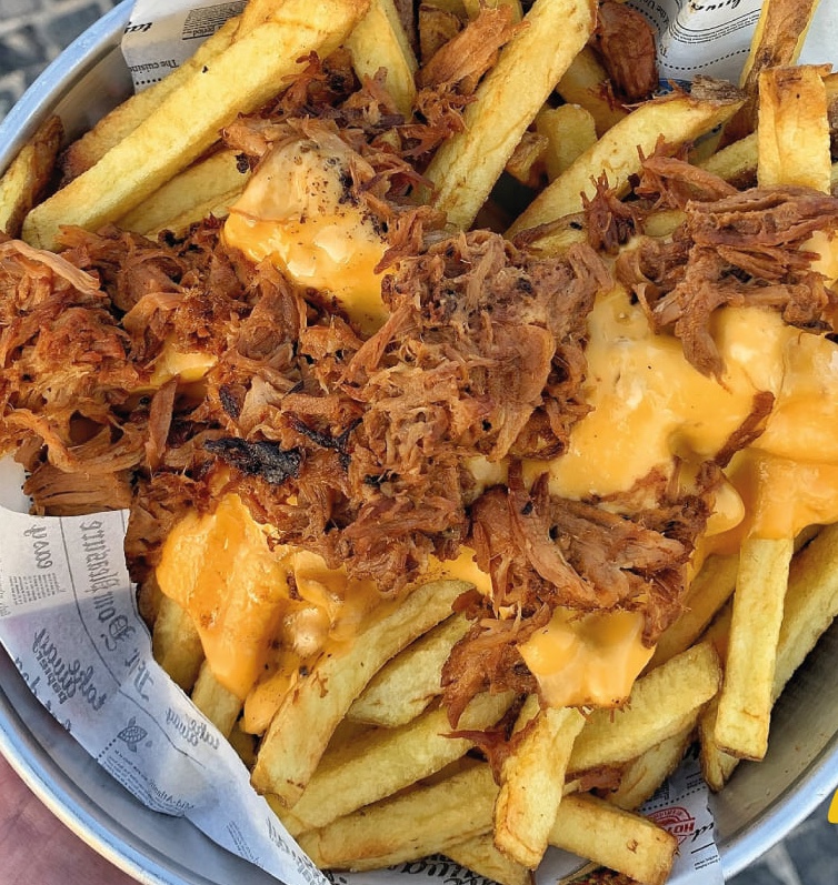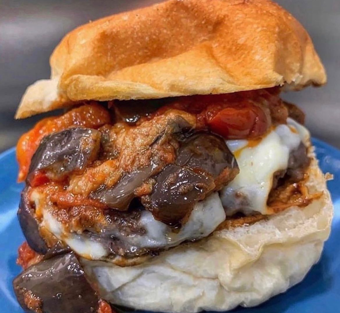Hamburger di scottona 200gr, Provola, Patate vertigo, Pulled pork, Melanzane a funghetto