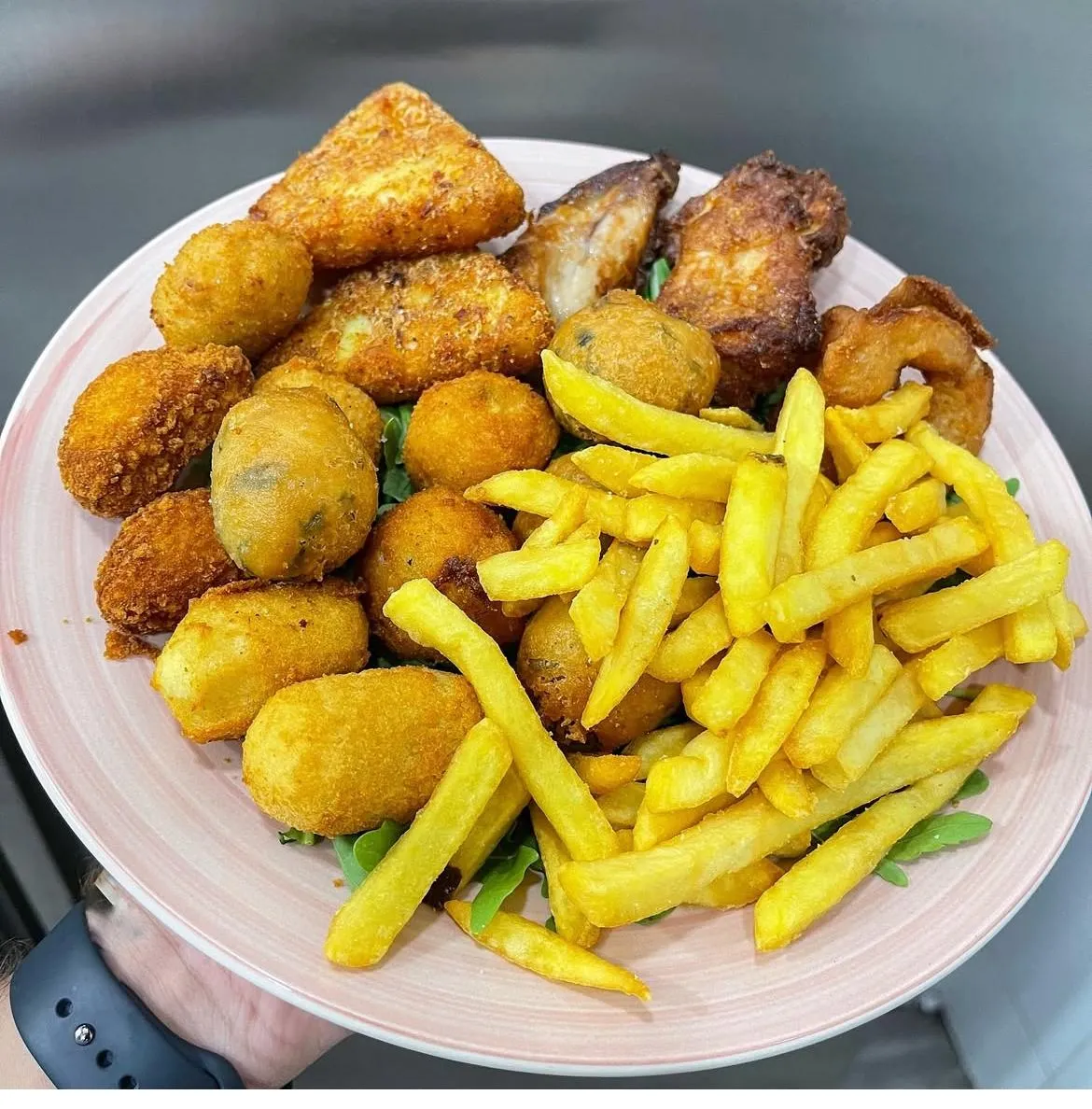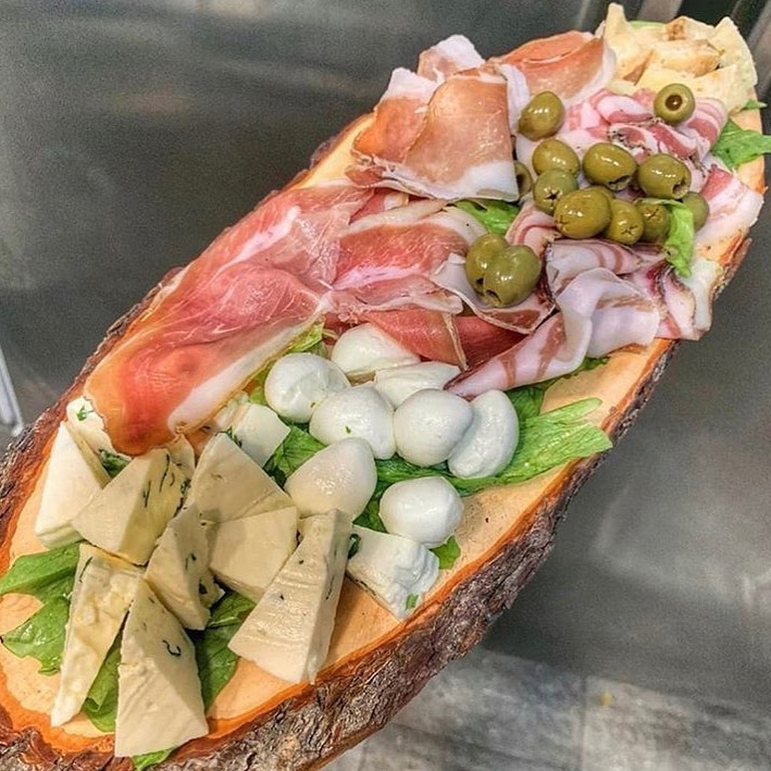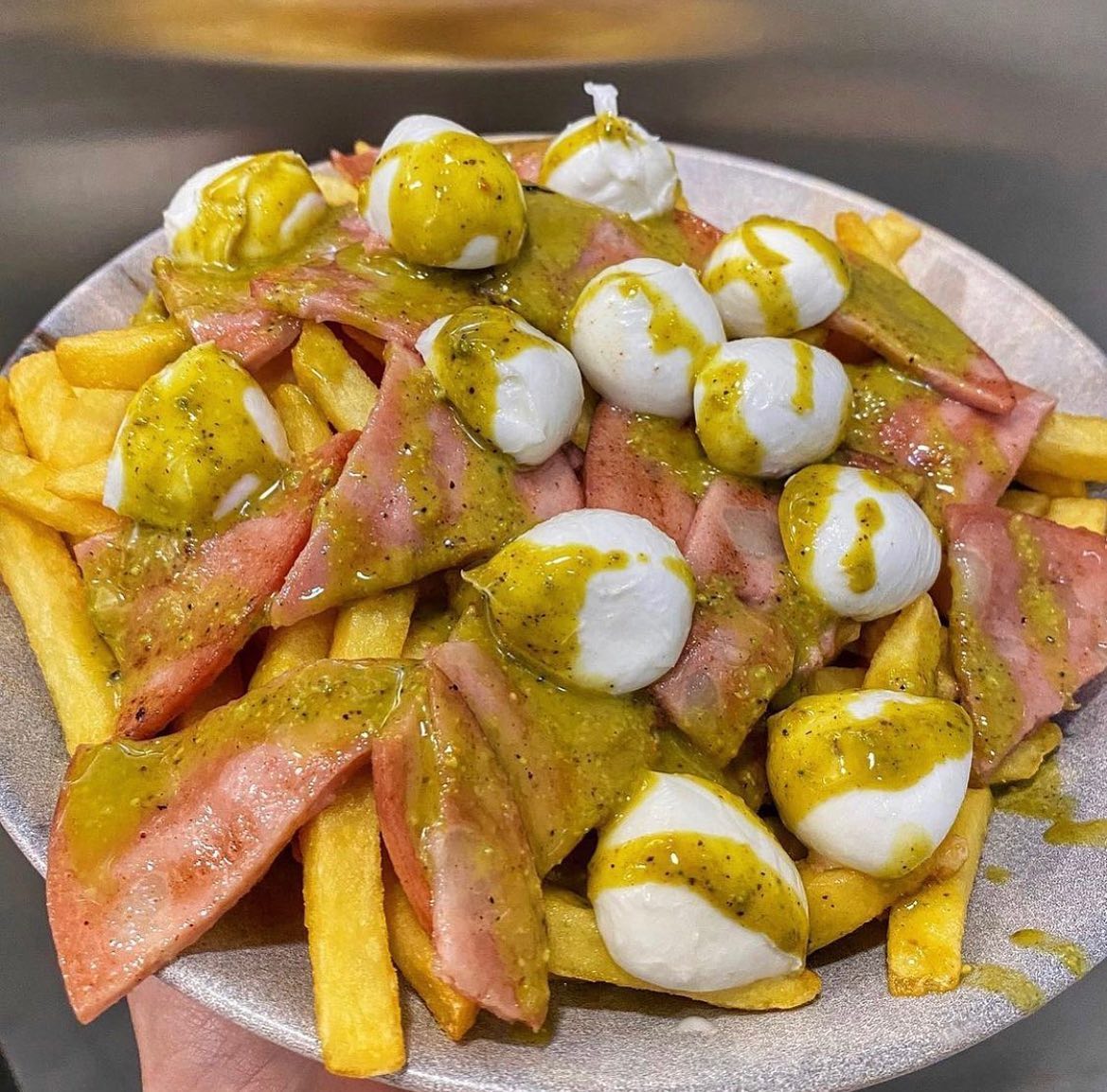 Patatine fritte, Ciliegine, Mortadella, Pistacchio