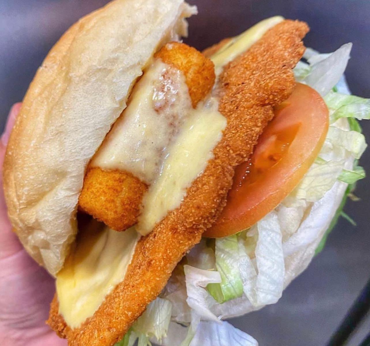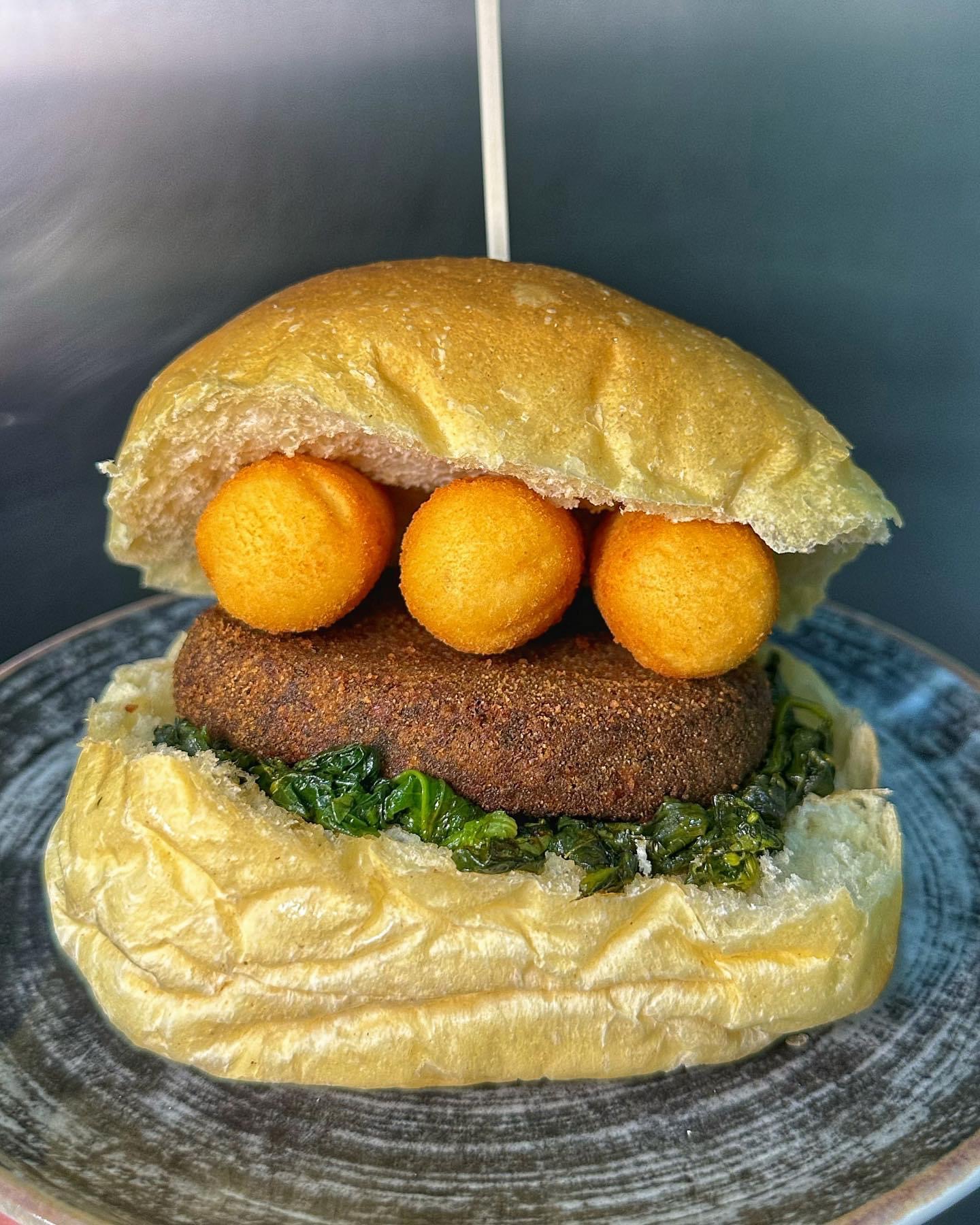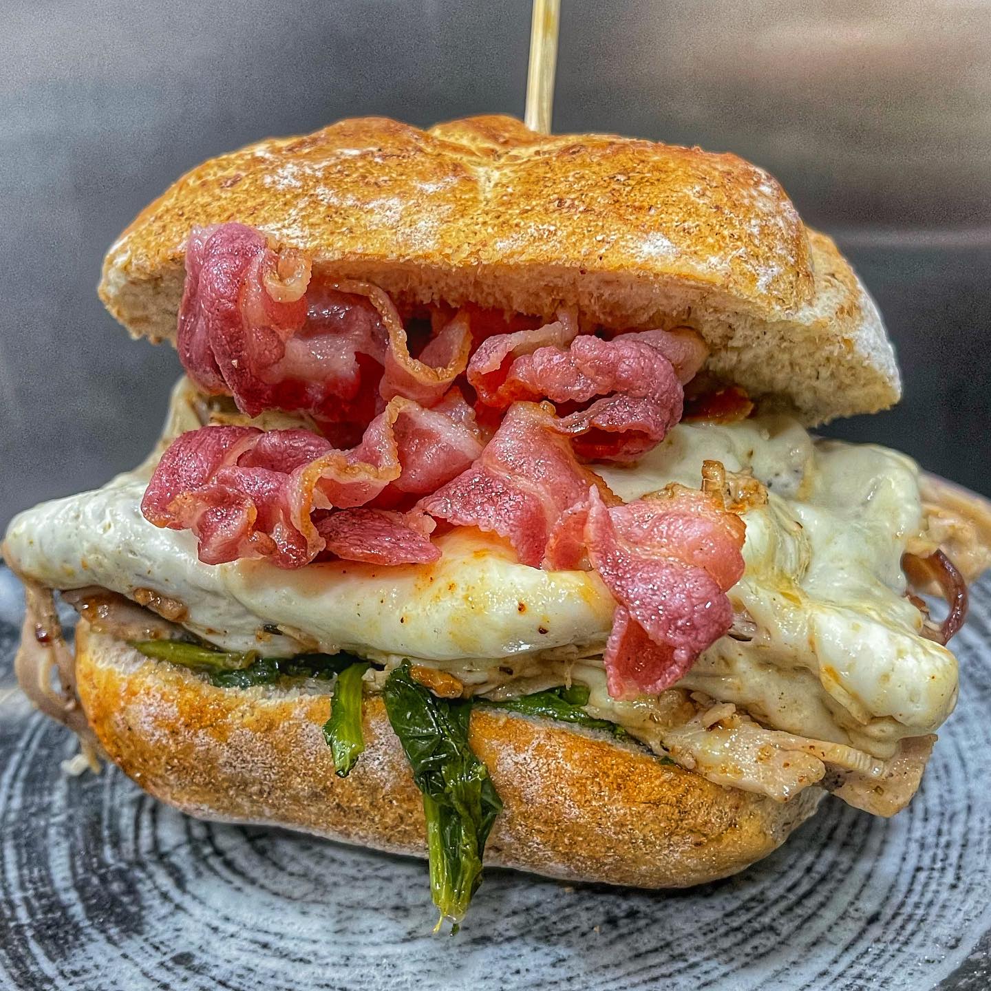 Hamb. di Salsiccia, doppia provola impanata, broccoli e maio spicy