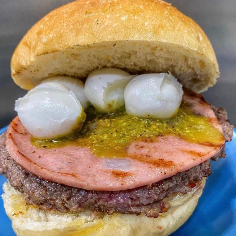 Hamburger di scottona 200gr, Mozzarelline, Mortadella grigliata, Crema di pistacchio