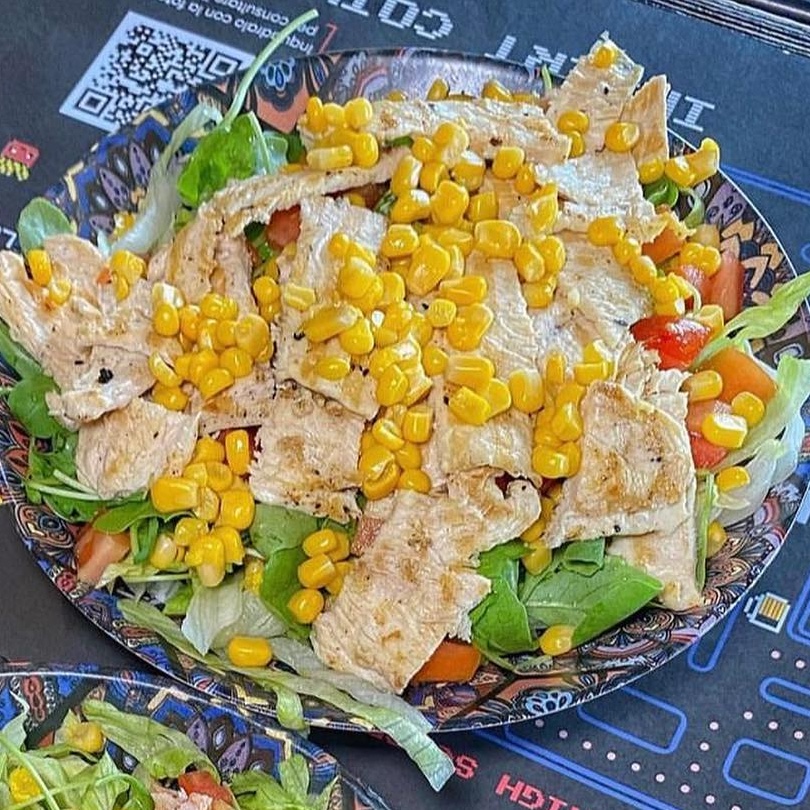 Insalata, Rucola, Pomodori, Mais, Pollo