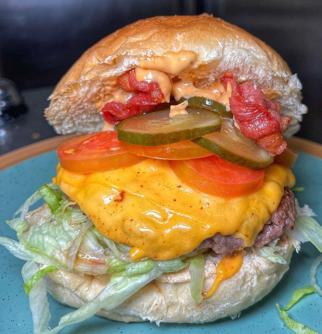 Hamburger di scottona, Cheddar, Bacon, Insalata iceberg, Pomodoro, Cetriolino, Salsa Burger special