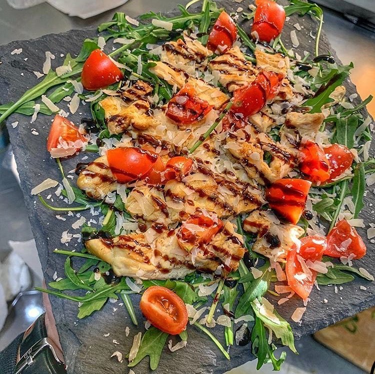 Petto di pollo 200 gr., Rucola, Grana, Pomodorini