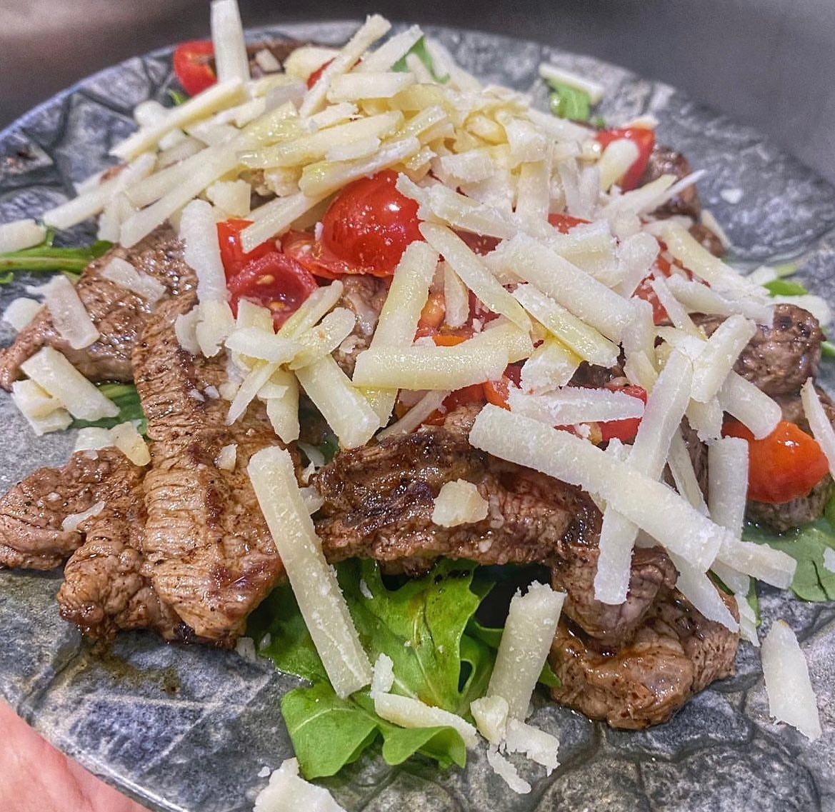 Scottona 400 gr., Rucola, Grana, Pomodorini
