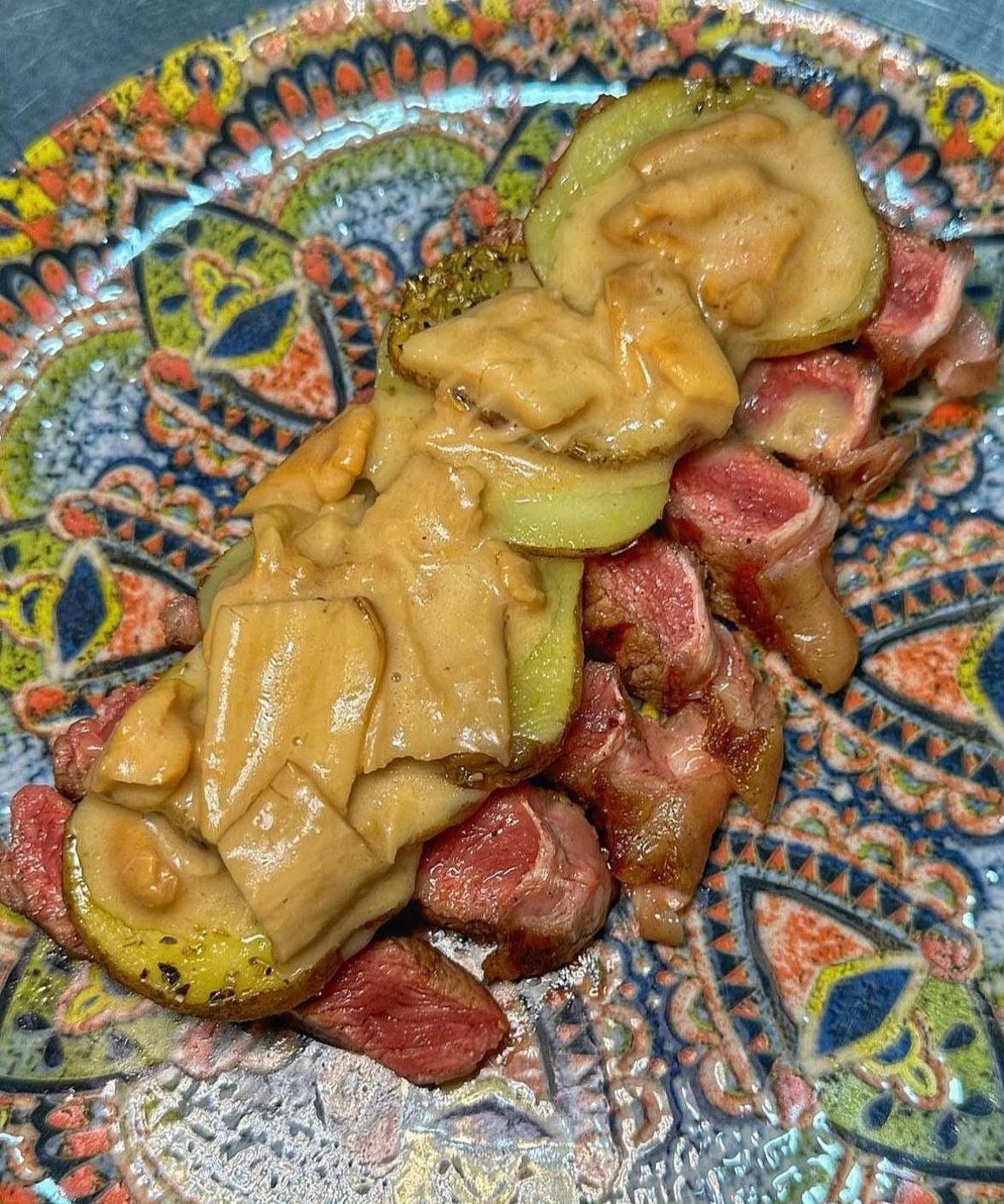 Scottona 400 gr., Zucchine alla scapece, Provolone del monaco