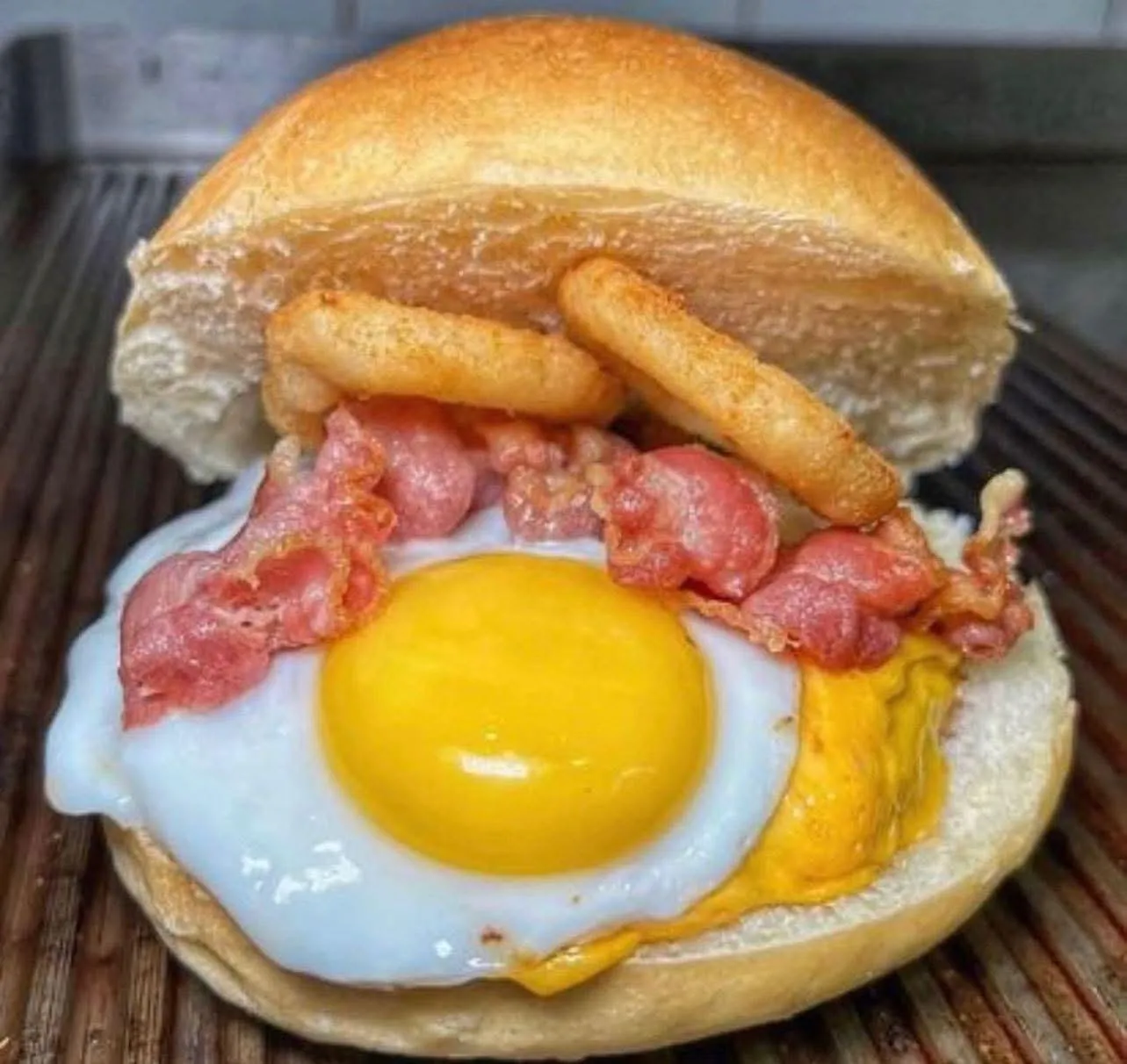 hamb., bacon, uovo, cheddar, anelli di cipolla