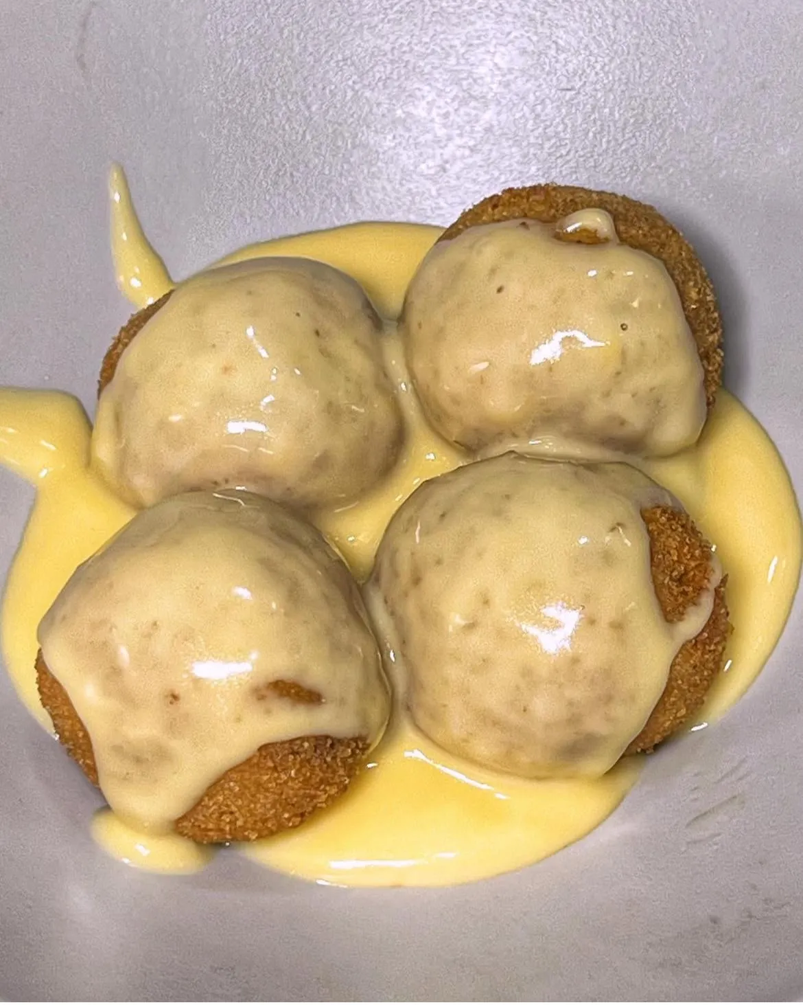 Cotoletta di pollo homemade 180gr, Insalata, Pomodori, Crocchè, Fonduta di Cheddar
